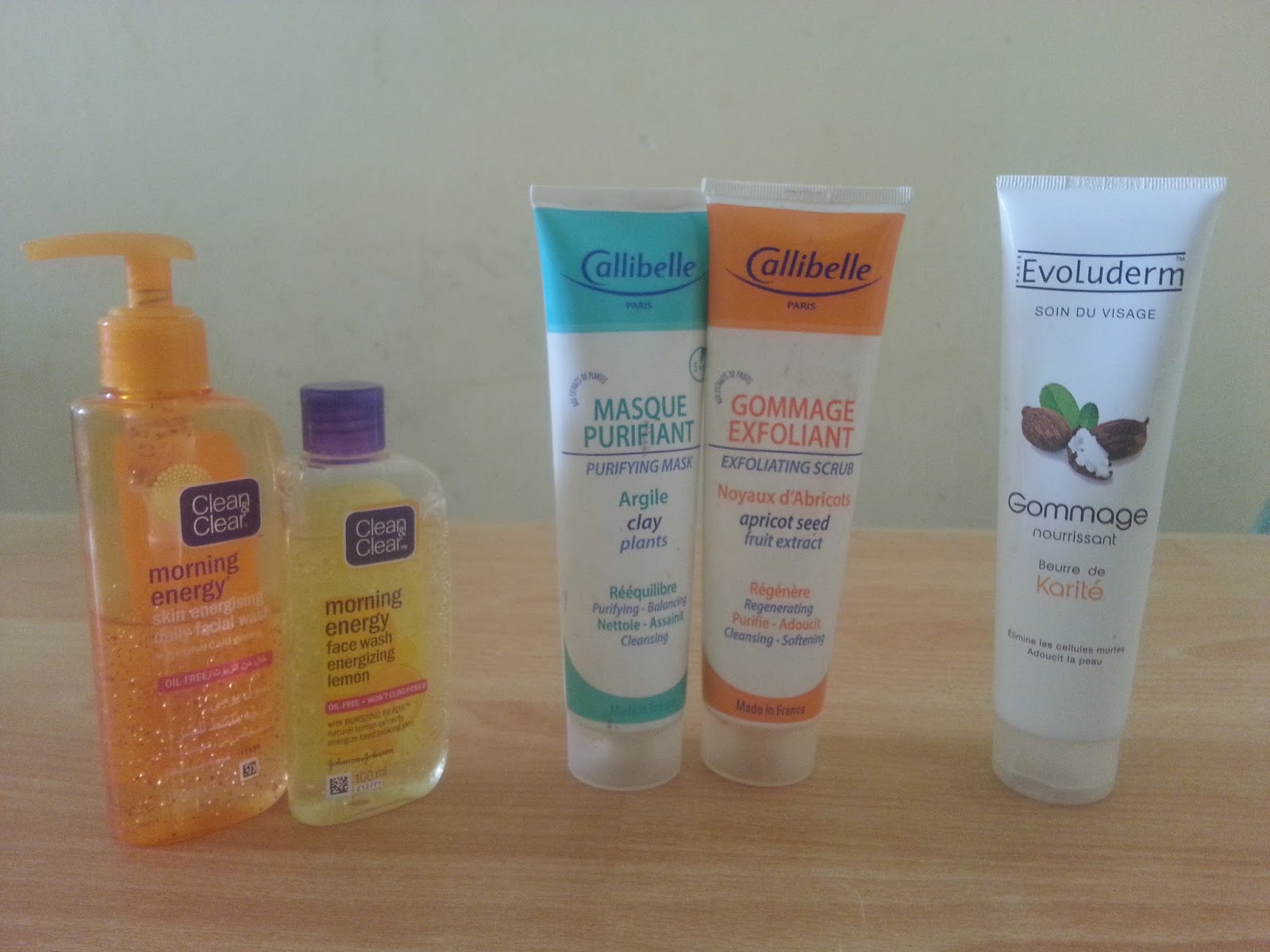 today i am here to share with you my current skin care routine, well i don't like to use that much of stuff on my face because i have very sensetive skin and anythings will causes me blumeshes and redness, so i did change my routine so many times, and i fond that this one goes perfect on me, so i decides to blog about it, maybe you can try them out.
